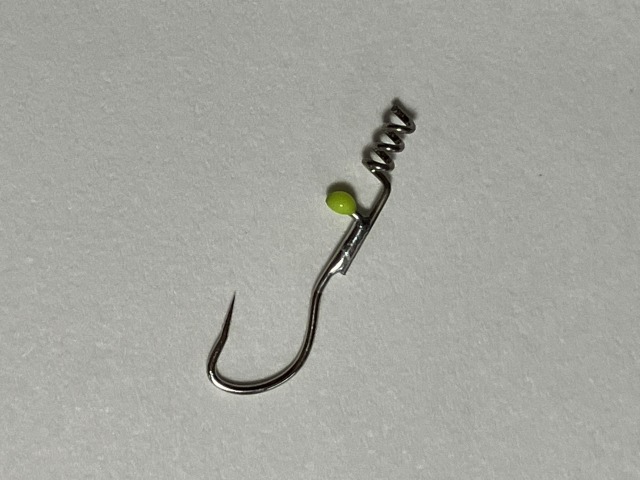 そもそもが友釣りに使用するサカサ針で、通常のハリス止めではなく、スプリング形状のものが付いている。