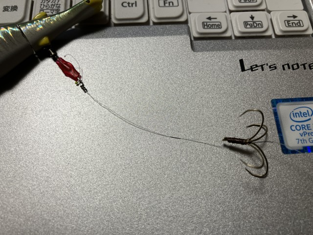 こーんな感じで、元からまっすぐハリスを固定できる。