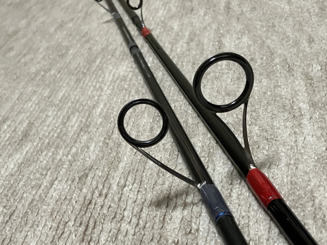 ガイドのリングサイズは、バット側ではショアワインダーの方が大きい。