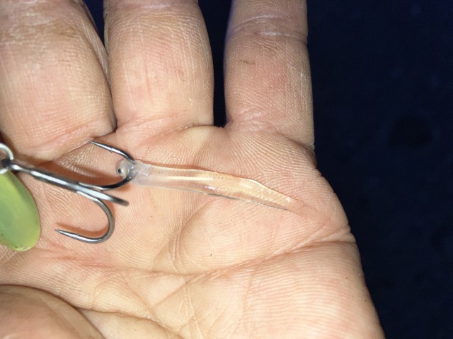 夕方に入り、沖から入ってくるであろうアオリイカを意識して、こんどはこんなルアーをチョイスしてみた↓